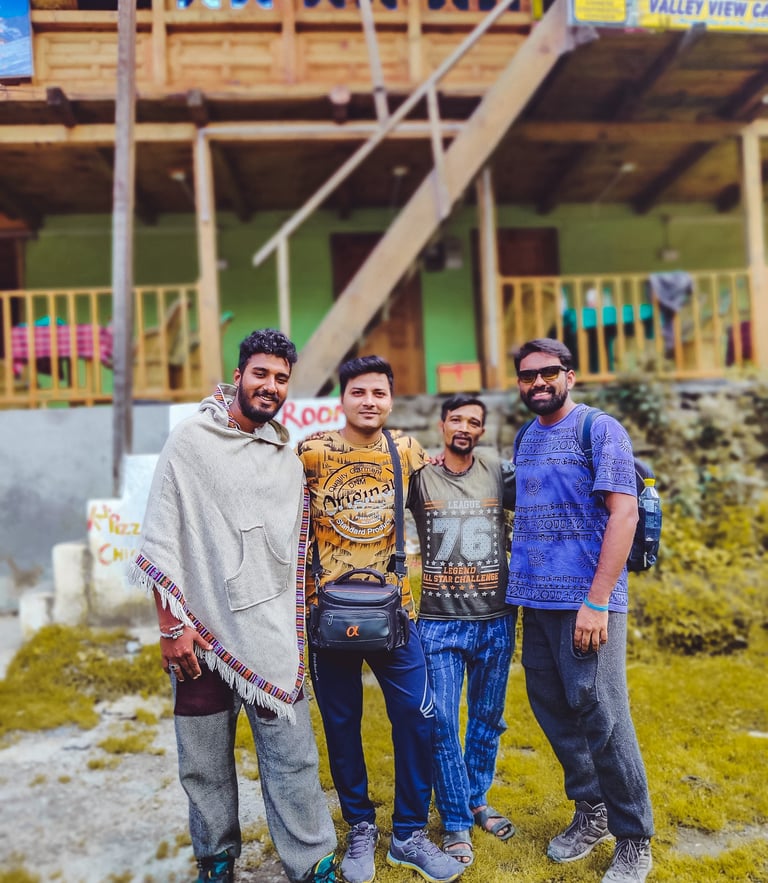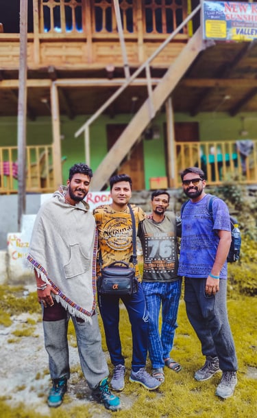Is safar ki sabse khoobsurat baat yeh thi ki main akela nikla tha, lekin raaste me mujhe aise dost mil gaye jo aaj bhi zindagi ka hissa hain. Trek ke dauraan aur gaon pahunchkar meri mulakaat Kunal se hui โ Kunal, Jodhpur ka ek pro traveler, aur baaki dost India ke alag-alag shehron se. Hum sab anjaan the, lekin pahadon ne humein dheere-dheere apna bana liya.